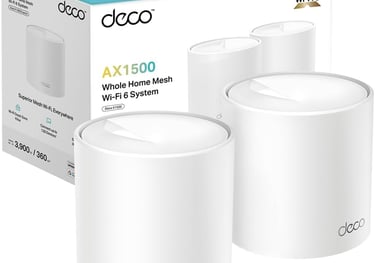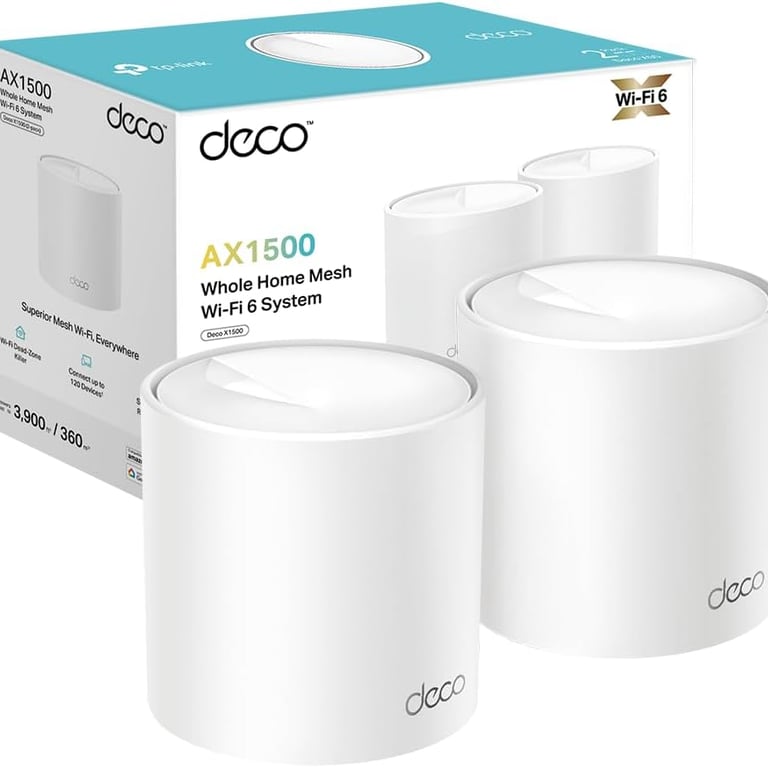 TP-Link Deco X1500(2 Pack)-AX1500 Whole Home Mesh Wi-Fi 6 System-Cobertura hasta 600 m2, 3X Puertos GigabIt por Unidad, Banda 160MHz Canal, ODFMA, 1024QAM, Color Blanco